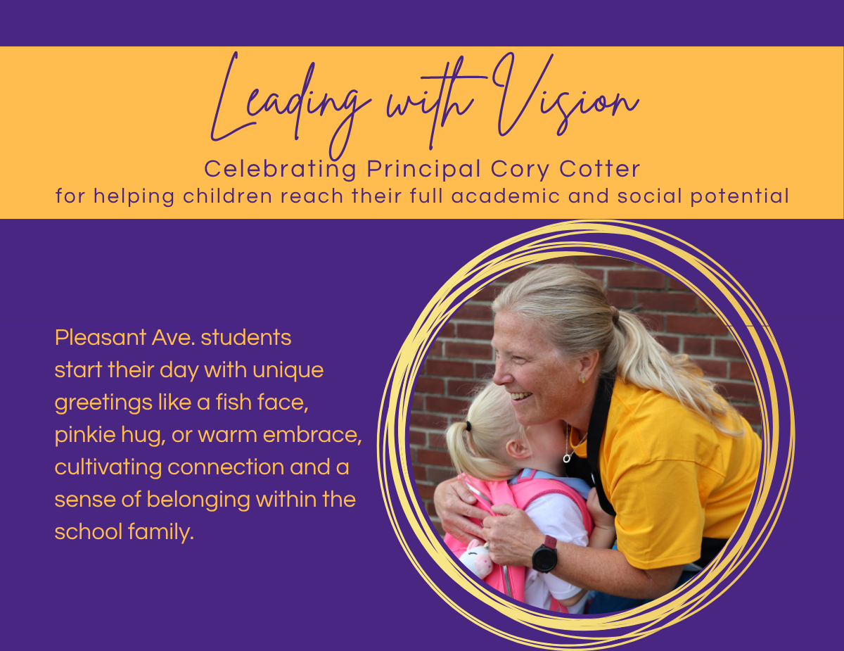 Cory Cotter is the principal of Pleasant Ave. Elementary for students in Pre-K, Kindergarten & Grade 1.